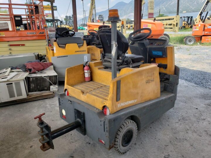 Carretilla de arrastre, Eléctrico 48 volts, capacidad de remolque 15,400 lbs, barra de tiro, control de velocidad electrónico, ejes delanteros y traseros para interiores, llantas sólidas. Peso de operación 2,778 lbs. Batería incluida modelo 24-D85-07, ID C007857.