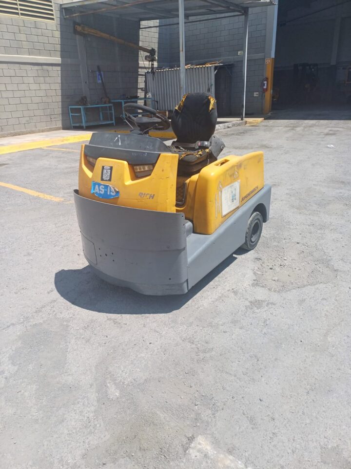 ** AS-IS ** Carretilla de arrastre, Eléctrico 48 volts, capacidad de remolque 15,400 lbs, barra de tiro, control de velocidad electrónico, ejes delanteros y traseros para interiores, llantas sólidas. Peso de operación 2,778 lbs. Batería incluida modelo 24-85B-07, ID C008820.