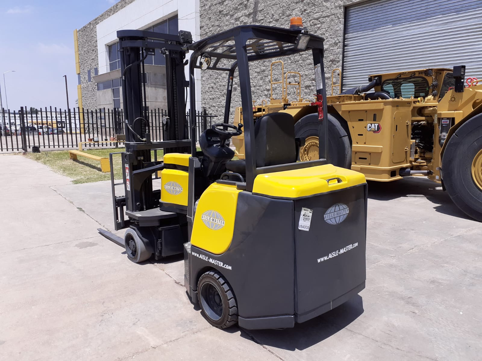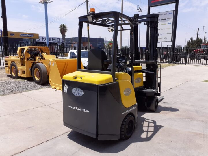 Montacargas eléctrico para aplicación de espacios reducidos, marca AISLE-MASTER, motor de tracción CA de 19.5 Kw, capacidad nominal de 2,000 kg