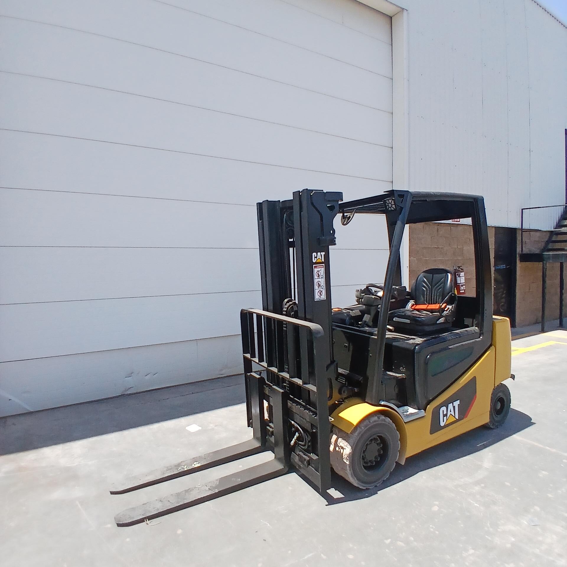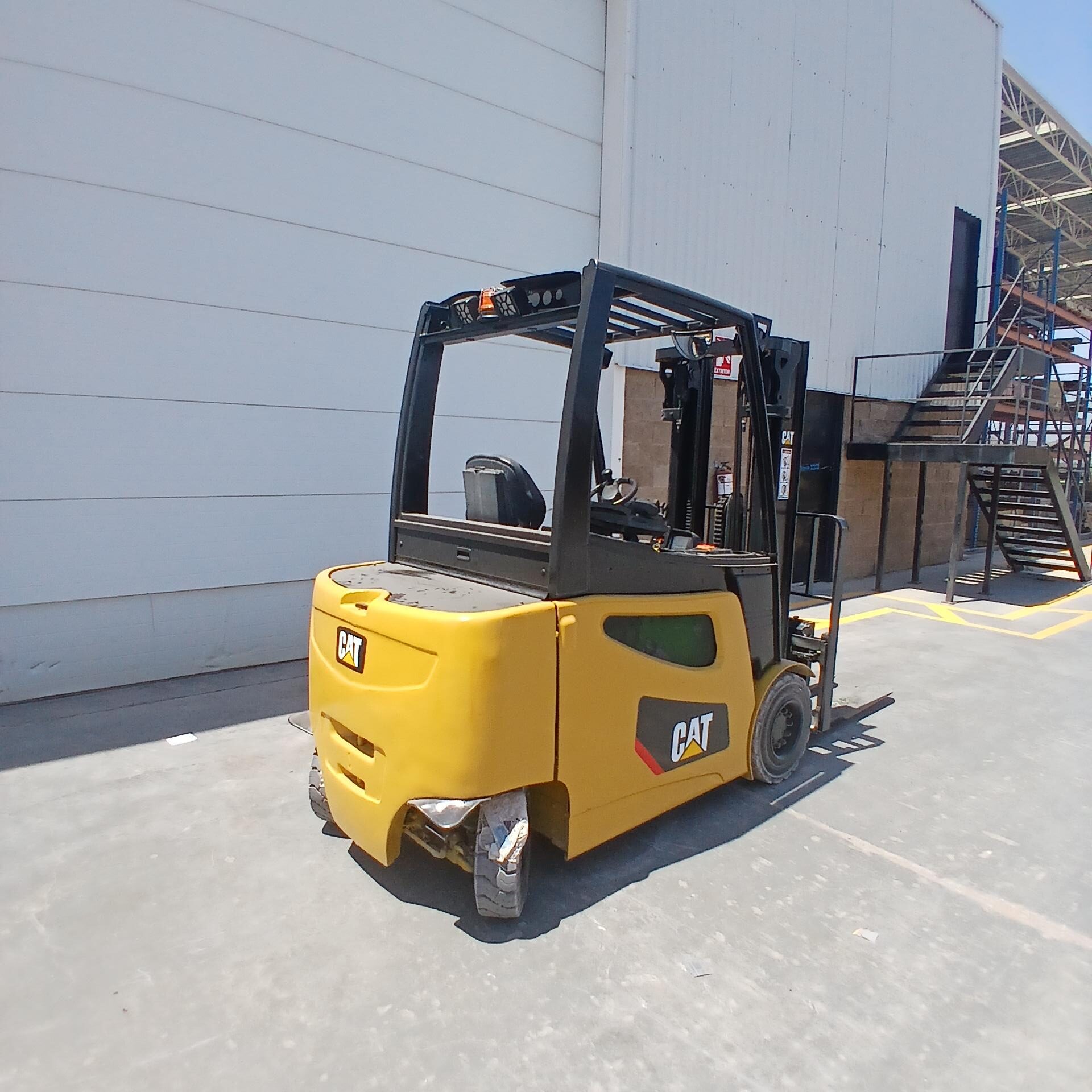 Capacidad maxima de carga 6000 LB, mástil triplex, altura máxima de elevación 185 in, puesto de operación abierto, 3 válvulas, motor eléctrico, llantas tipo sólidos medida delantera 23×10-12/8.00 con 100% de vida remanente y trasera 18×7-8/4.33 con 100% de vida remanente, largo de horquilla 48 in, batería P012082A