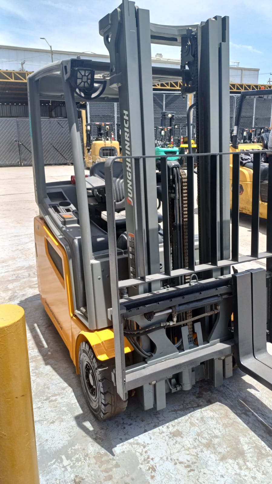 Capacidad de 3,000 Lbs, Eléctrico de 48V, Mástil triplex con altura maxima de estiva de 188 pulgadas, Desplazador lateral, Horquillas de 42 pulgadas, Llantas solidas.