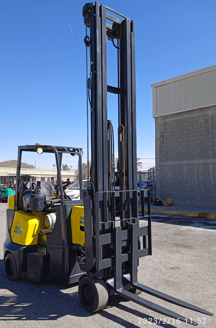 **ASIS** Montacargas articulado para aplicación de espacios reducidos, marca AISLE-MASTER, Motor a GAS LP, Mástil replegado: 3.3 mts, altura máxima de estiva 8.5 mts , Horquillas de 42 pulgadas, capacidad máxima de 2,000 kg.