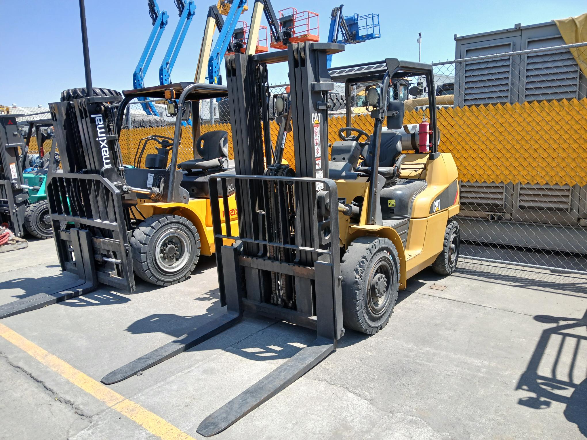 Capacidad 8000 lb, mástil triple con altura de estiva de 187 pulgadas, horquillas de 48 pulgadas, 4 funciones hidráulicas, capacete, motor GK45, combustible gas LP, llantas sólidas