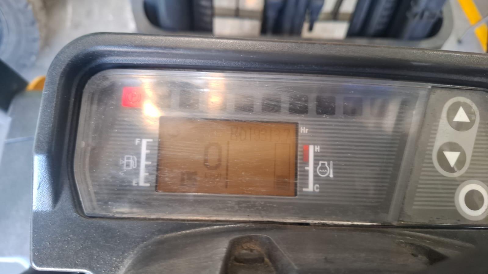 **AS-IS** Capacidad de 5,000lbs, Motor K25 a GAS LP, Mástil triplex con altura de estiva de 188 pulgadas, Desplazador lateral, Horquillas de 42 pulgadas, Llantas solidas, tipo Cushion.