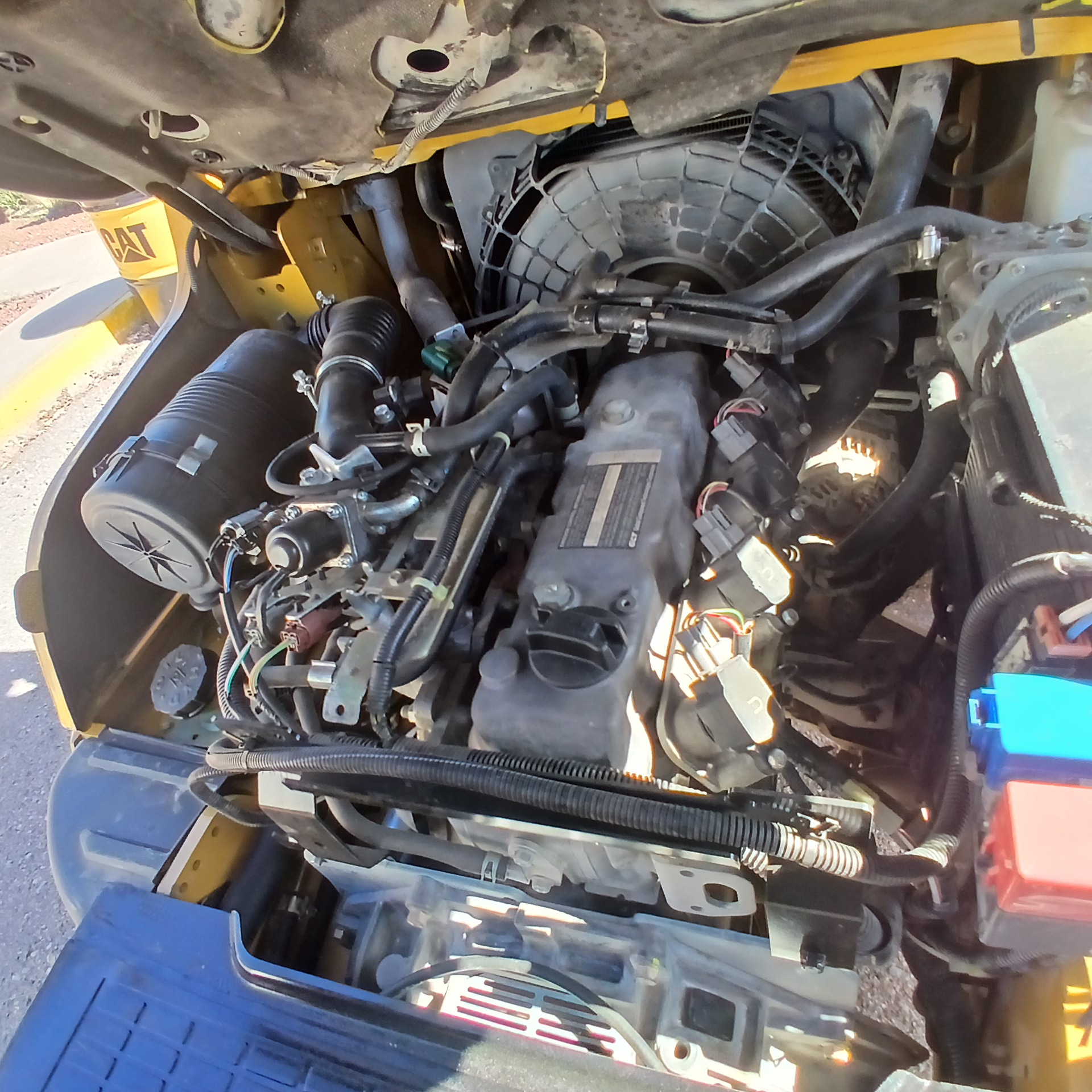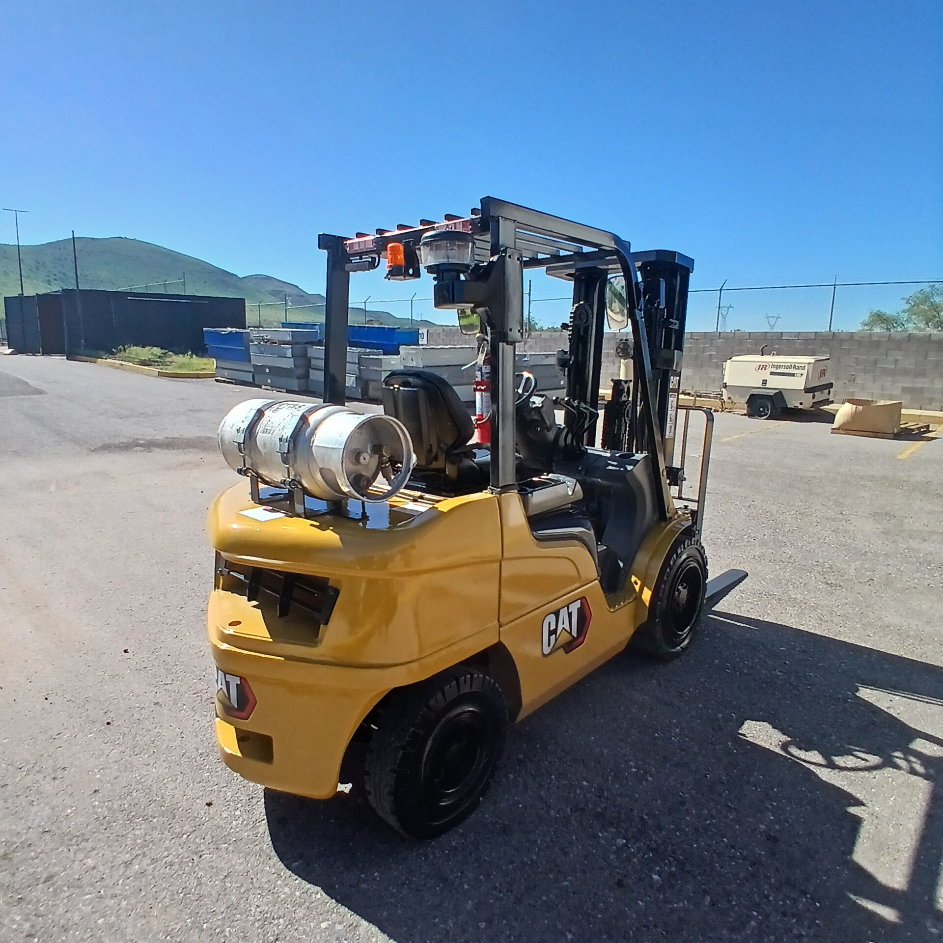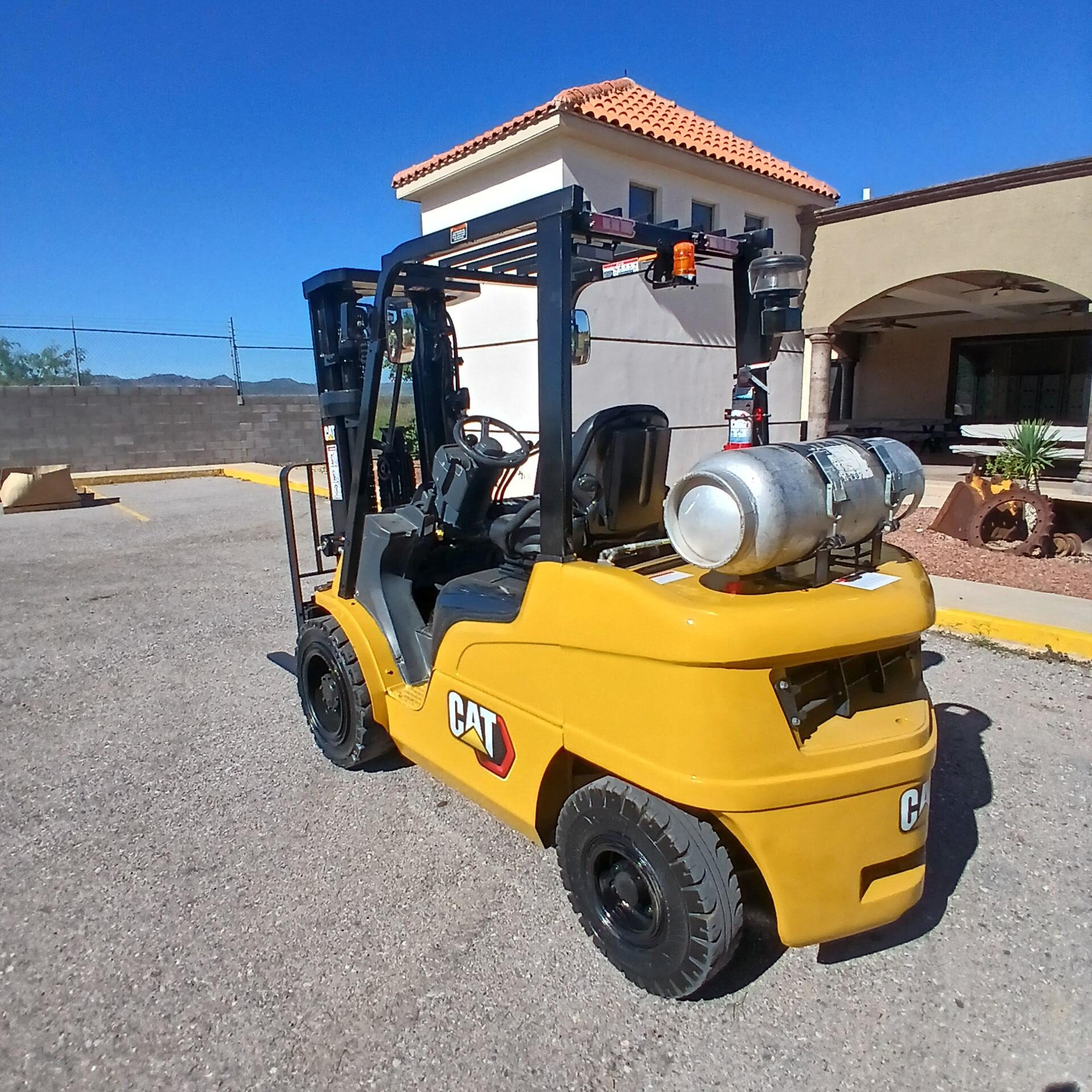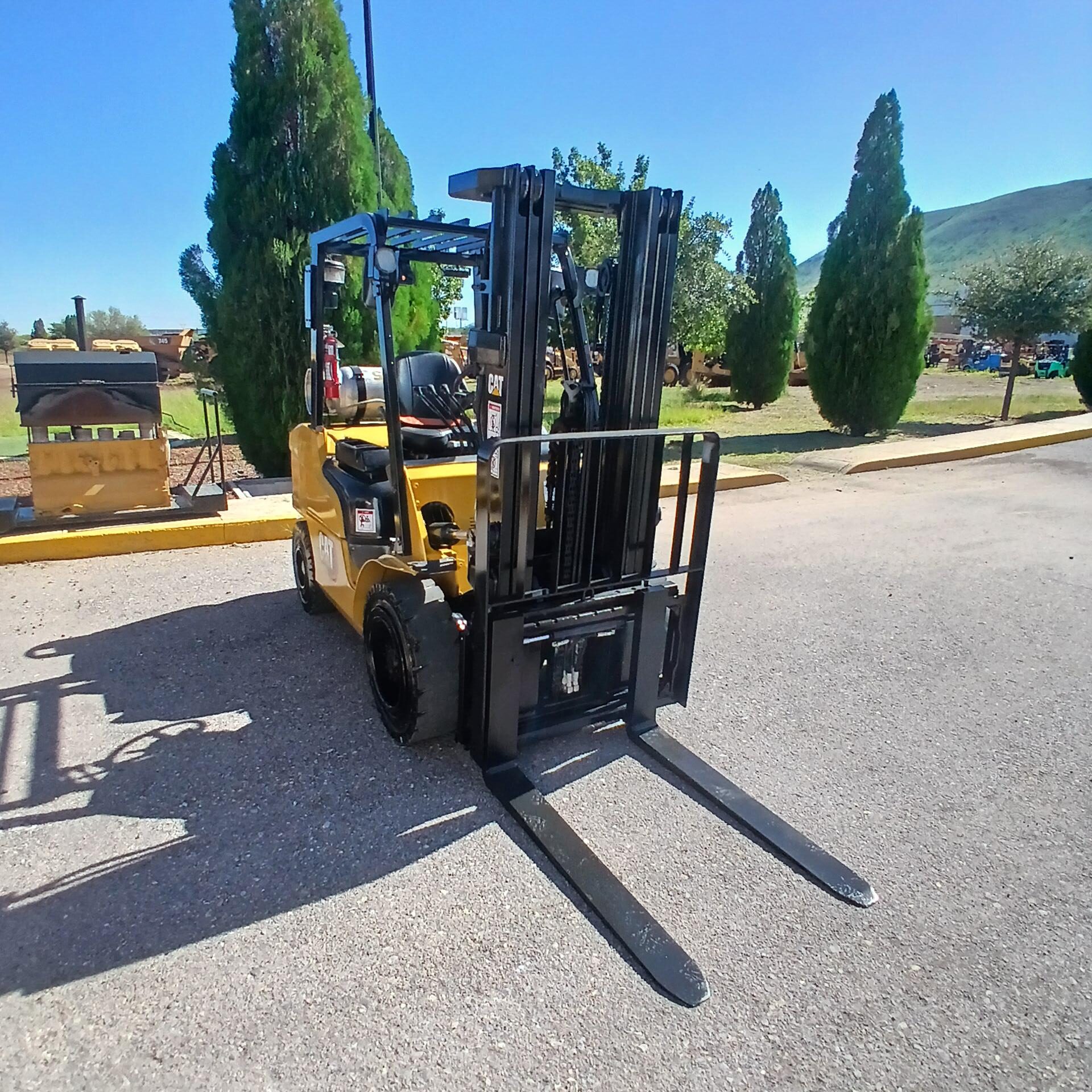 Capacidad maxima de carga 6000 LB, mástil triplex, altura máxima de elevación 186 in, puesto de operación abierto, 3 válvulas, motor de combustion GK25, solo a gas LP, transmisión powershift 1F/1R, llantas tipo sólidos de tracción medida delantera 28X9-15 con 100% de vida remanente y trasera 6.50-10 con 100% de vida remanente, largo de horquilla 42 in.